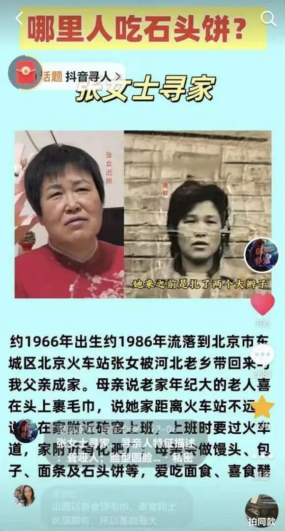 抖音寻东谈主志愿者“平缓快慰”为颉巧芳发布的寻亲视频