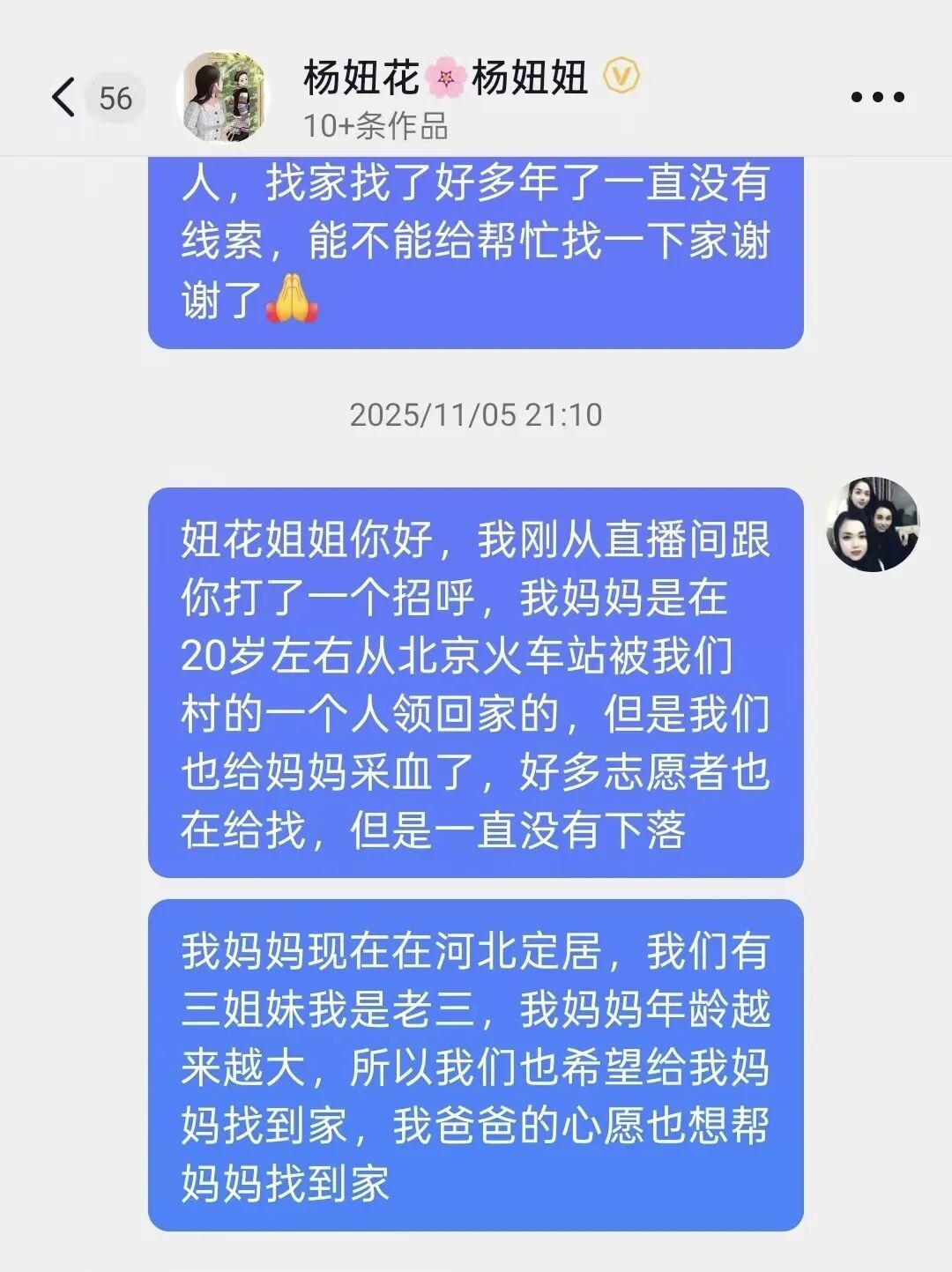 2024年11月,杨妞花匡助一位山东聋哑大姨找到家